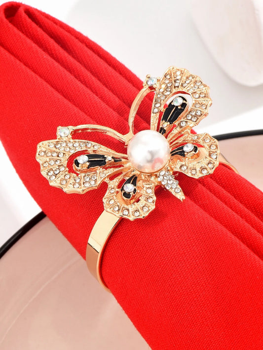 Creative Butterfly & Faux Pearl Decor Napkin Holder Ring