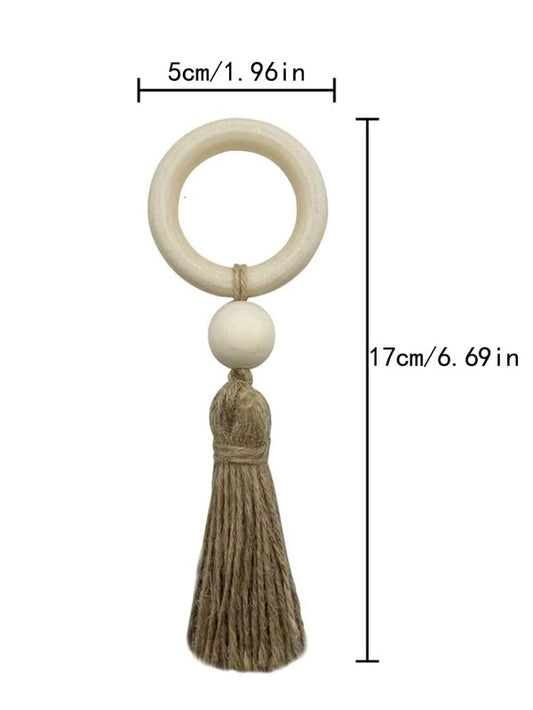 Wood Bead & Tassel Decor Napkin Ring
