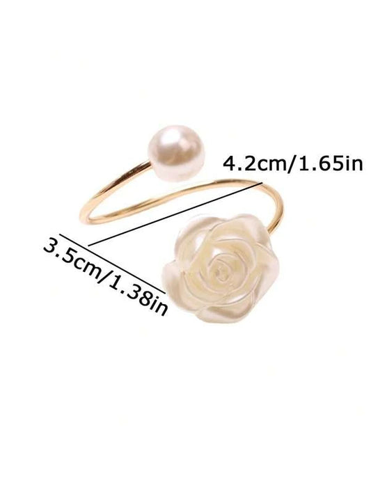 Modern Flower & Faux Pearl Decor Napkin Ring